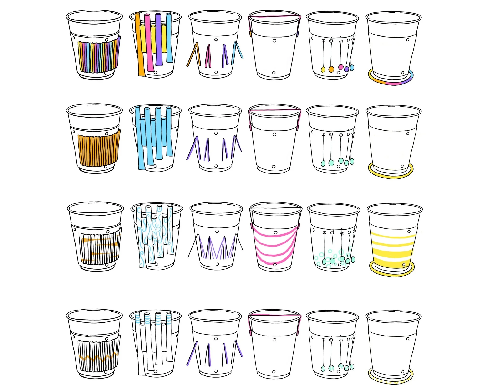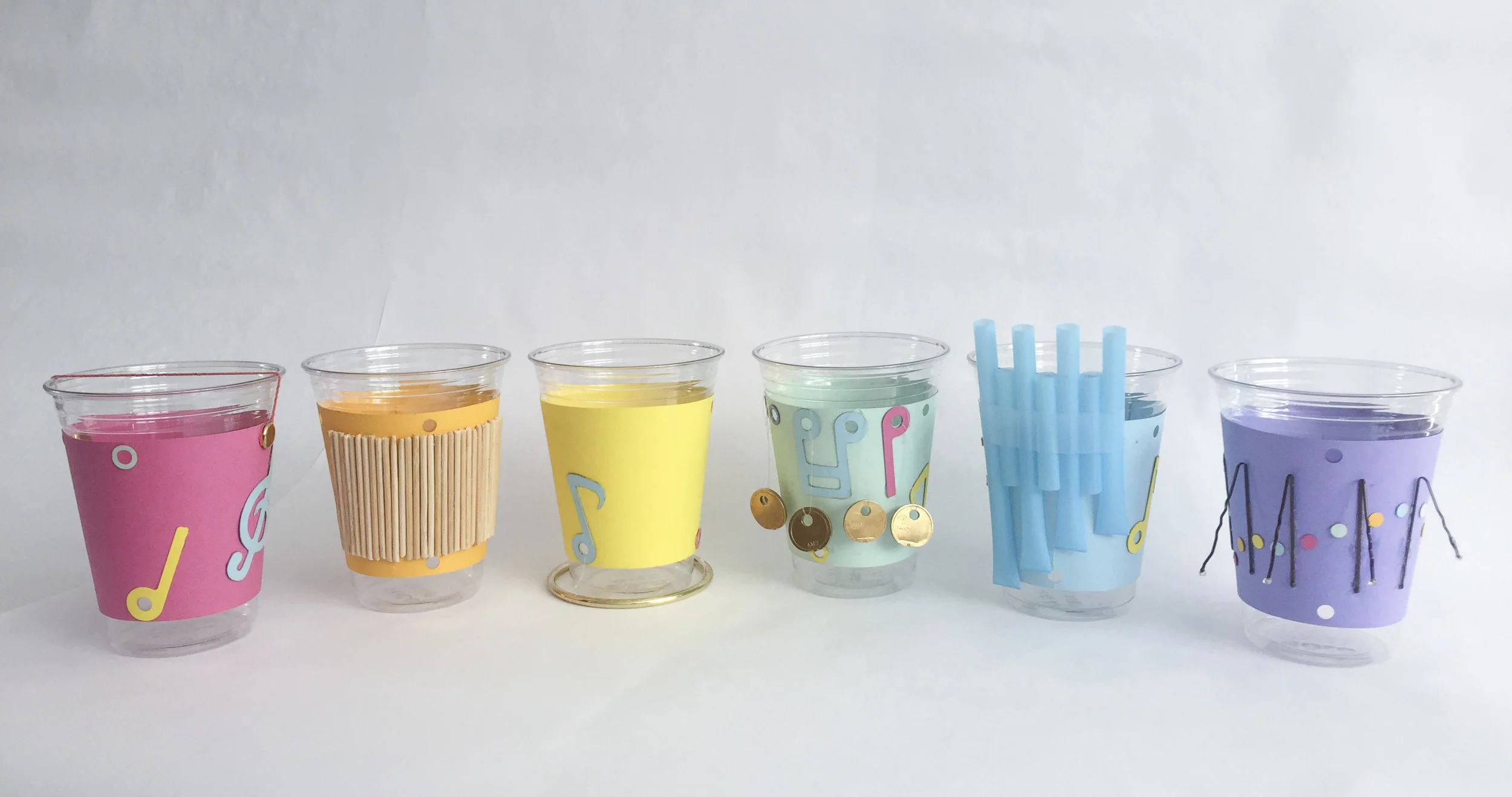 Musical Cheers is a set of six party cup sleeves, each incorporating a different instrument so people can play music together for a shared experience.